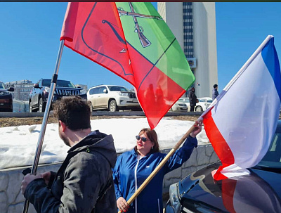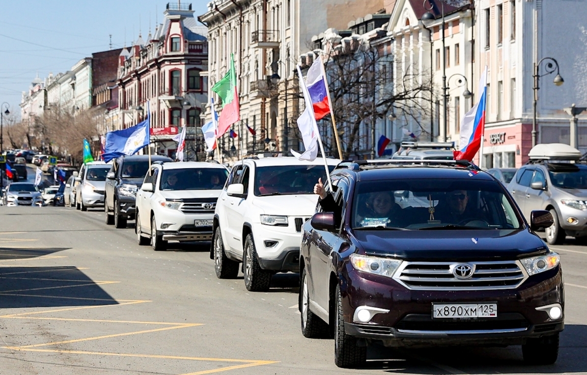 Автопробег в честь 9-й годовщины воссоединения Крыма и Севастополя с Россией "Крымская весна" с участием профактивистов Приморья, г. Владивосток, 18 марта 2023