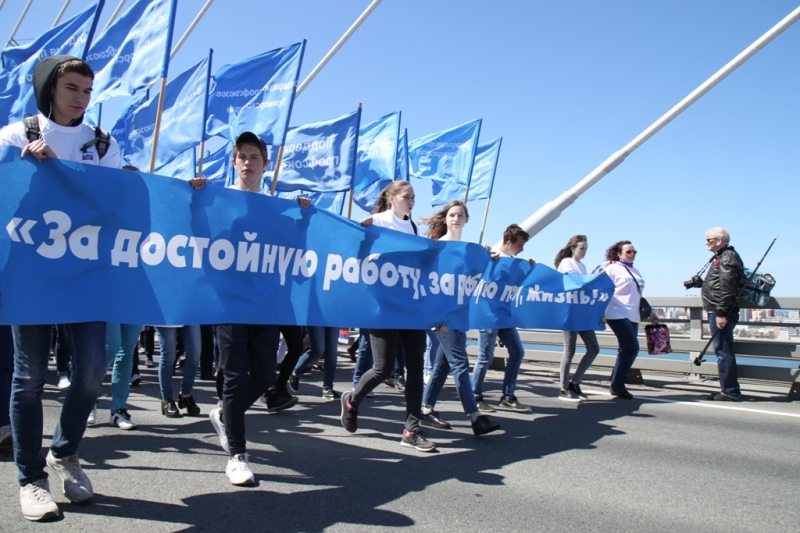 Около 42 тысяч приморцев отметили Первомай профсоюзными шествиями, митингами и собраниями