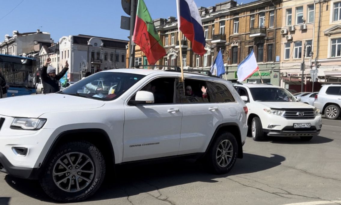 Автопробег в честь 9-й годовщины воссоединения Крыма и Севастополя с Россией "Крымская весна" с участием профактивистов Приморья, г. Владивосток, 18 марта 2023